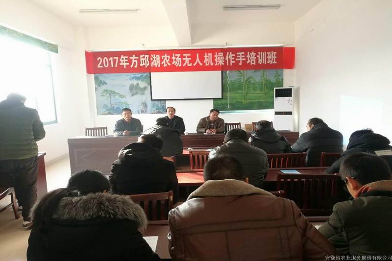 1220,省农服公司农用无人机操作手培训班在方邱湖农场开课,两单位领导褚德军、肖国庆作开班动员,来自农垦小岗公司、方邱湖农场的30多名农机手参训。