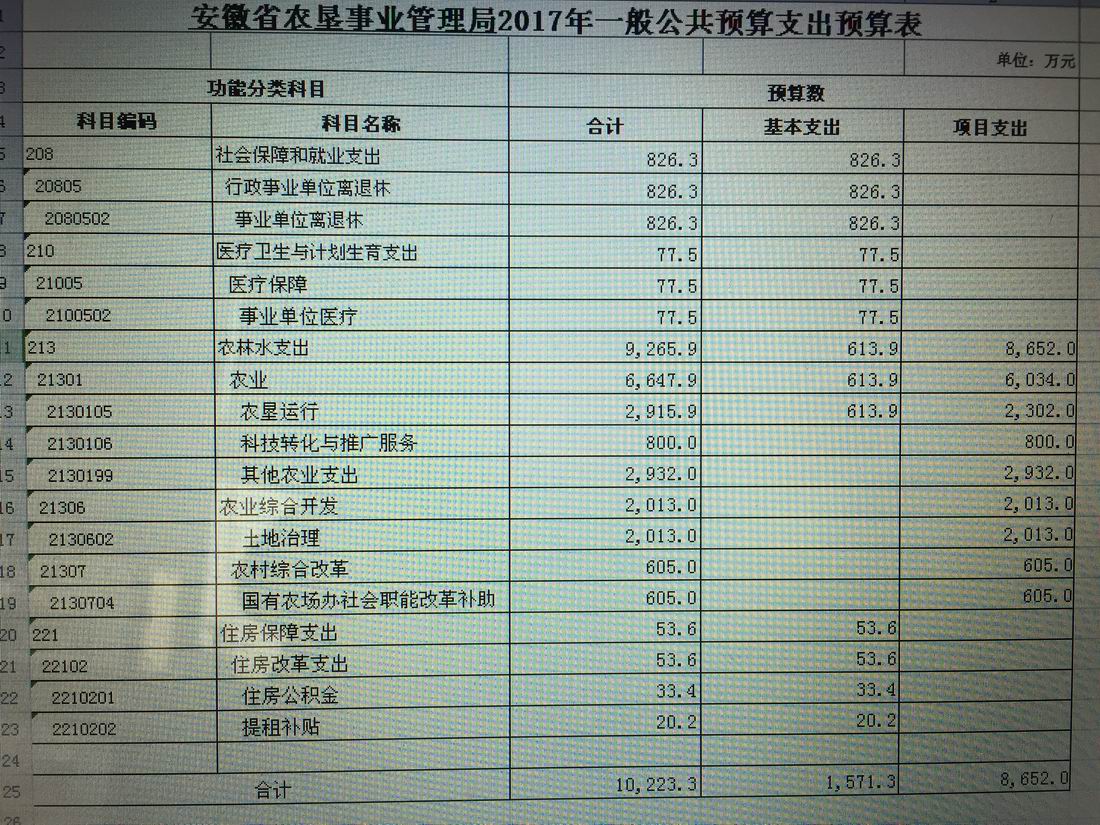 2. 安徽省农垦事业管理局2017年一般公共预算支出预算表