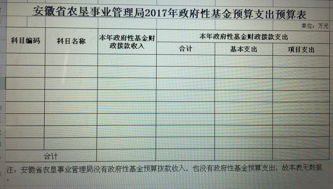 安徽省农垦事业管理局2017年没有政府性基金预算拨款收入,也没用使用政府性基金预算安排的支出。