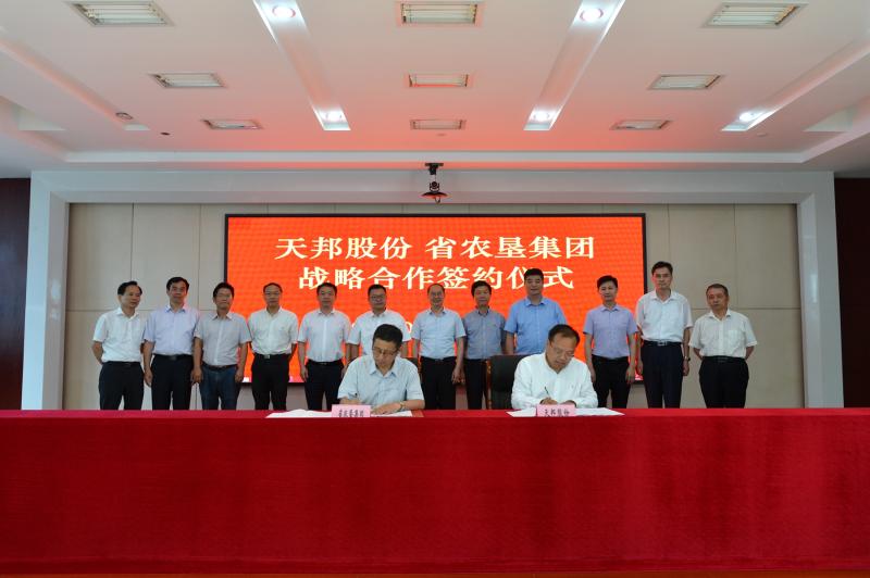 为充分发挥国有企业和农业产业化企业在稳定生猪生产、保障市场供给中的示范带头作用,积极打造生猪养殖全产业链,加快建设长三角绿色农产品生产加工供应基地,7月1日上午,开云手机在线登录入口集团与天邦食品股份公司战略合作框架协议签订仪式在合肥举行。省农垦集团党委书记、董事长詹先豪,天邦股份董事长张邦辉出席签约仪式。农垦集团党委副书记王良贵主持签约仪式。