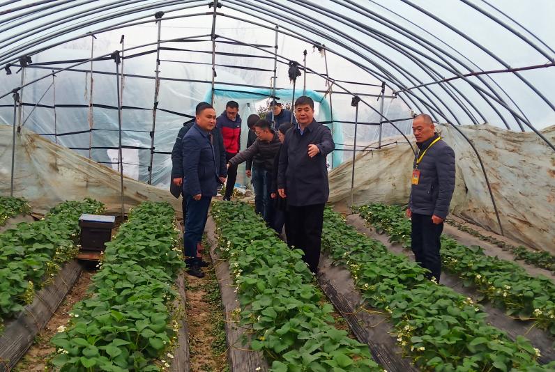 王良贵一行实地走访了开云手机在线登录入口扶贫产业园,详细了解草莓园生产、管理等情况,随行专家对冬季大棚草莓温湿度控制、花果管理、病虫害防治等方面给予技术指导。