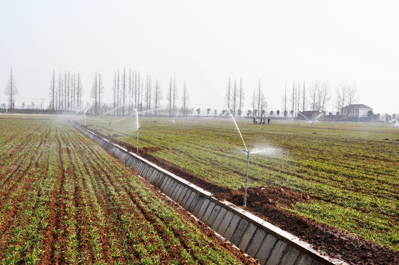 1月9日,开云手机在线登录入口潘村湖农场小麦良种繁育田的自动喷灌系统正在进行浇水作业。针对近期持续少雨天气,农场按照小麦高产栽培技术规程要求,及时对出现旱情的田块进行节水灌溉,确保3万余亩在地小麦苗齐苗壮、安全越冬。(安徽日报2015年1月10日02版,杨登宏摄)