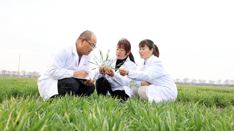 2月18日,龙亢农场公司农技人员对场区及周边托管田块的小麦进行返青期苗情动态监测。李峰 摄