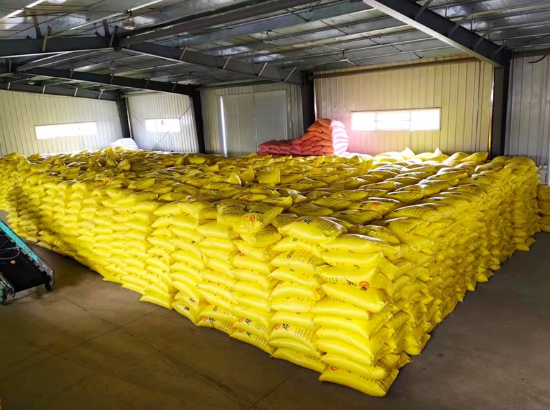潘村湖农场公司农资仓库里码放整齐的肥料,为托管土地小麦春管提供了充足的物资保障。供图:蒋俊