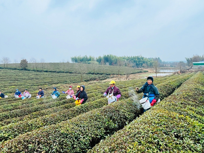 皖垦茶业集团各茶场公司抢抓良好天气,有条不紊地加快推进统一经营茶园春茶管护工作,有序组织人员科学精准追施催芽肥,进一步促进茶叶提质增效,全力以赴力争实现春茶产销“开门红”。(许炜 供稿)