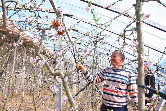 茶园施肥强春管 棚内桃花授粉忙
