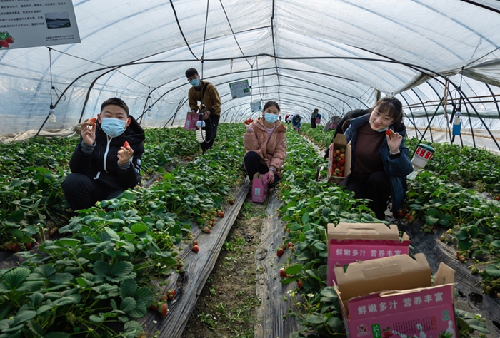 随着气温、地温回升,水家湖农场公司果农们迎来了草莓盛果期,也迎来了草莓采摘、销售的旺季,今年该农场公司草莓种植面积2668亩,以红颜、粉玉、隋珠和淡雪等4个品种为主,初步预测亩均单产3500斤。(王亚莉 供稿)