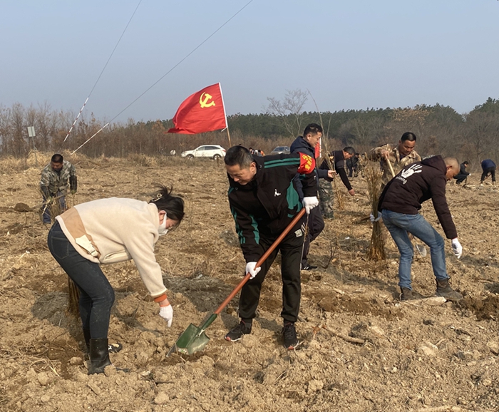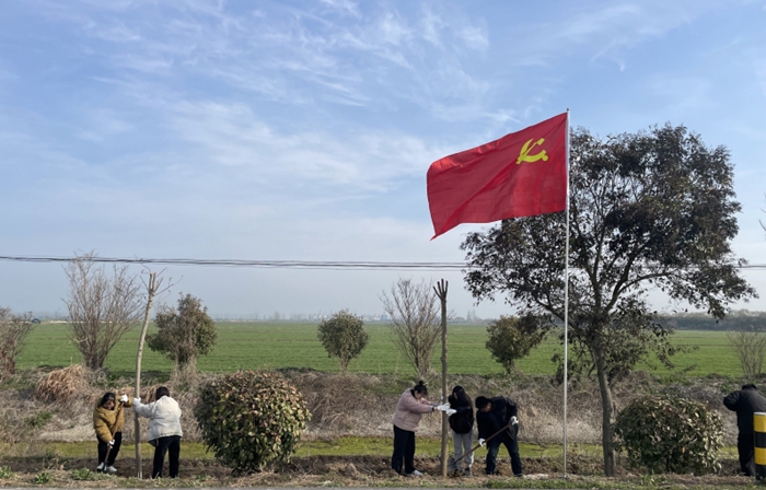 潘村湖农场公司开展了“美丽田园,绿化有我”主题党日活动,各基层党支部60多名党员志愿者在潘太公路农场段栽植广玉兰等苗木100余株。(蒋俊 供稿)