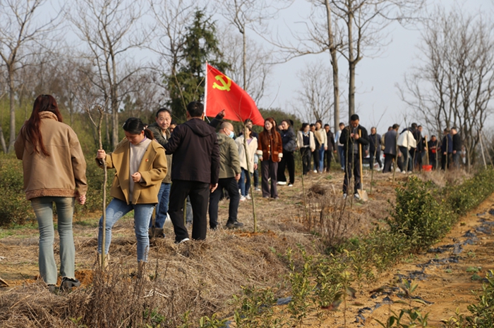 3月12日,皖垦茶业集团党委开展“履行植树义务,共建美丽茶场”主题党日活动,在40亩新植茶园边种下了260余棵景观苗木。整个茶区植树节期间共种植4000余棵景观苗木。(许炜 供稿)
