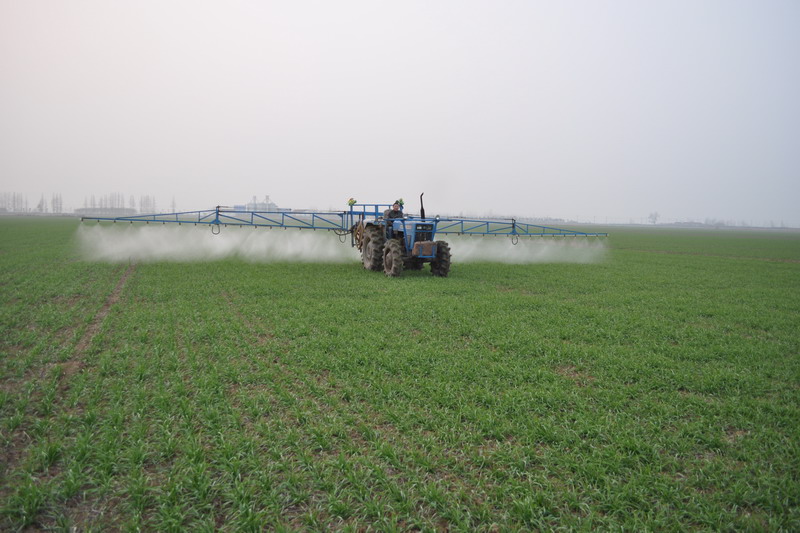 12月6日,在全省最大的小麦良种繁育基地——开云手机在线登录入口潘村湖农场,家庭农场职工正在进行化除喷肥作业。眼下沿淮地区冬小麦进入分蘖期,肥水需求旺盛,该农场对3.2万亩小麦种子田全面开展化除喷肥作业,促进小麦壮苗越冬。(安徽日报2013年12月9日头版,杨登宏摄)
