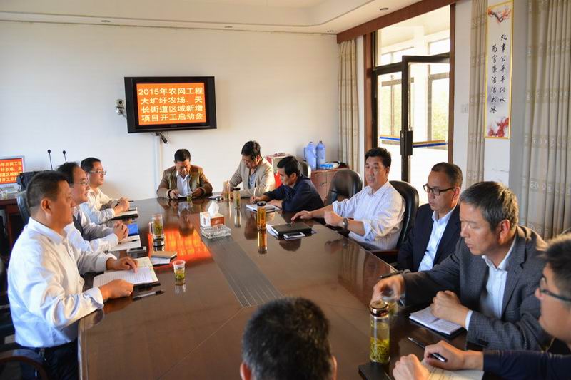 10月19日,大圹圩农场、天长街道2015年农网工程新增项目举行启动仪式,副场长施广庆、天长电力公司副总经理朱俊宝及农场各农管区、街道长亭社区等垦地负责人参加。