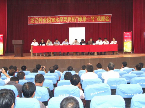 9月22日上午,龙亢种业国审水旱两用稻“绿旱一号”观摩会在龙亢农场召开。皖垦种业、龙亢种业、省农科院、省科技学院、四川禾嘉种业公司安徽分公司、蚌埠市农委、怀远县农技推广站、怀远县种子站的领导和专家,以及省内外各大种业公司的销售商、代理商近200人参加观摩,省农科院副院长潘泽义、省农科院绿色食品研究所研究员、“绿旱一号”水稻育种人朱启升,皖垦种业副总经理、龙亢种业公司董事长夏献锋,皖垦潘村湖农场场长韩大鸣等出席观摩会,龙亢种业公司总经理、龙亢农场副场长程希文主持观摩会。