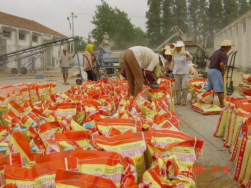 今年午季,大圹圩农场入库小麦种子1200多万斤。目前小麦种子销售工作正紧锣密鼓有序展开,截止发稿时,已外售小麦良种300多万斤。 为了生产高质量的“放心种子”,抓季节尽早完成麦种销售任务,场种子销售部门积极组织人力、机械,利用晴好天气,加班加点,认真对收购入库的小麦种子进行再次清选和检验,确保麦种纯度和质量。估计,小麦种子清选任务在9月底结束。(图为:进行种子清选、精量包装的劳动场面) (夏庆芳)
