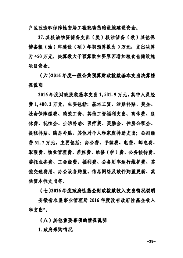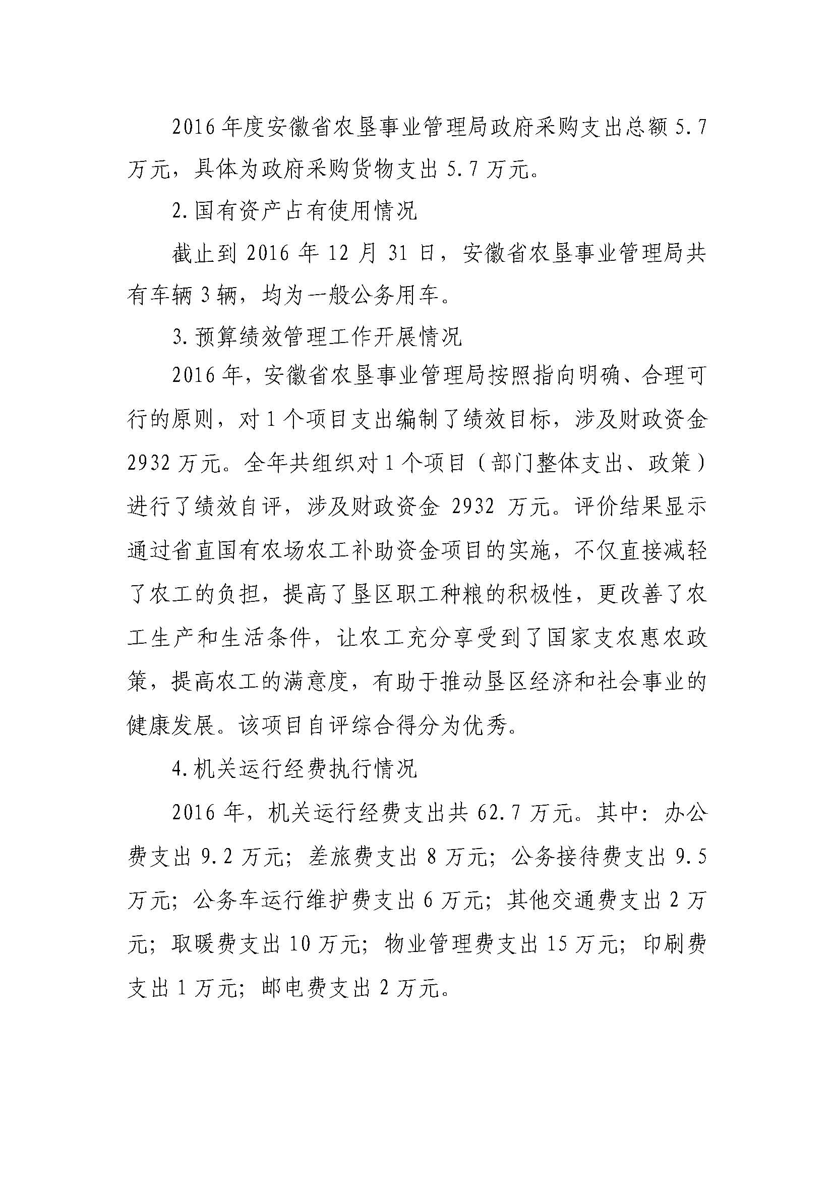 安徽省农垦事业管理局2016年“三公”经费决算情况