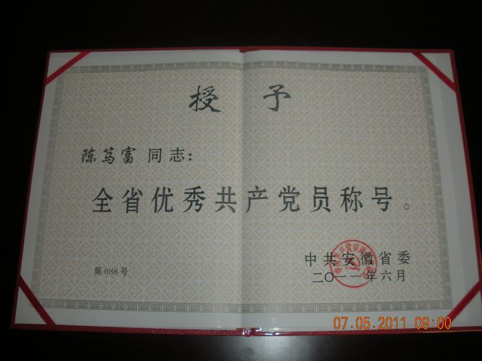 皖河农场基层党员干部陈笃富荣获安徽省优秀共产党员称号
