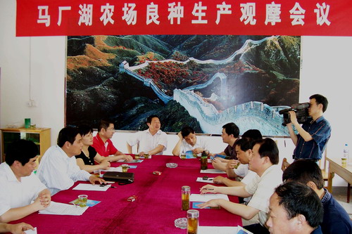 5月25日,定远县人民政府在水家湖农场马厂管理区组织召开小麦良种观摩会,在县人大副主任臧升年带领下,县委办、政府办、公安局、财政局、农委、交通局、粮食局、农行、消防大队等单位负责人参加会议。 全体与会人员深入到马厂管理区良种生产基地,现场观摩皖麦50、邯郸6172等小麦良种生长情况,参观了正在建设中的江淮种业公司;水家湖农场领导介绍了水家湖农场基本情况,重点介绍了合并管。理后新的水家湖农场运行体制与机制,发展战略与思路。