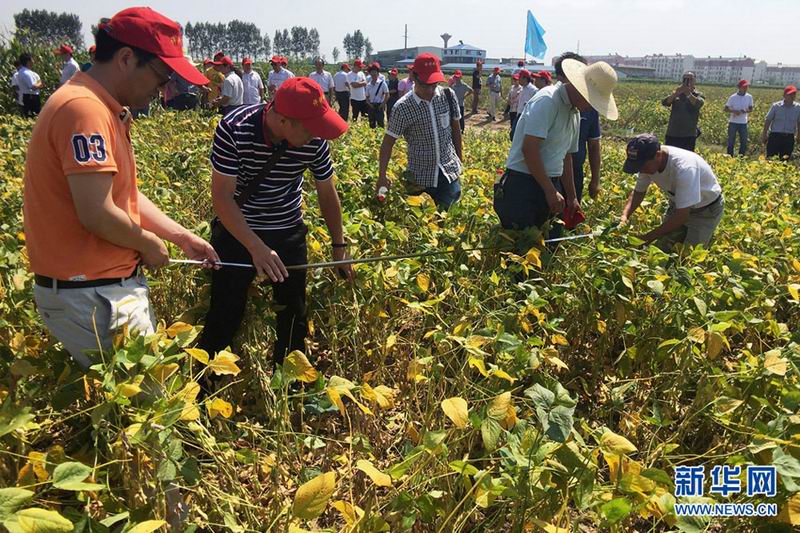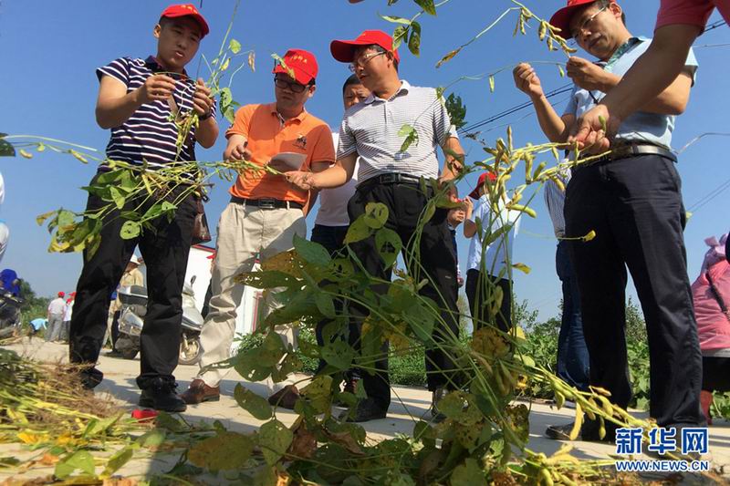 通过现场调研和实际亩产测定,专家们认为,这些优质大豆品种在南方具有较高的推广价值。(新华网2017年9月18日,刘兵生 李龙 摄)
