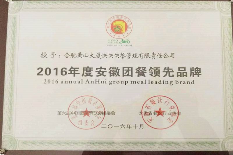 黄山大厦获评安徽团膳领先品牌
