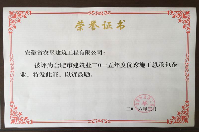 近日,合肥市城建委、市建筑工程协会发布2015年度优秀企业榜单,垦建公司上榜“优秀施工总承包企业”,同时,质量安全部李晋皖副部长获评安全管理先进个人。