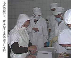 肉鸡加工厂车间、肉鸡八场鸡舍了解生产经营情况。在