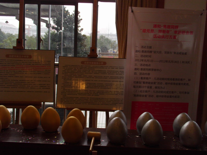 2012年元旦佳节期间,开云手机在线登录入口通和房地产集团合肥公司举办了通和·易居同辉项目系列促销活动。活动针对看房客户、成交客户设置了两类“幸运砸金蛋”:首次看房并登记信息的客户可通过槌砸“金蛋”获得奖品;购房成交客户则可通过槌砸“金蛋”获得现金奖励冲抵房款。此外,该公司还利用节假日主动“走出去”,到合肥市主要社区和商业繁华地段派发项目推介广告单页。