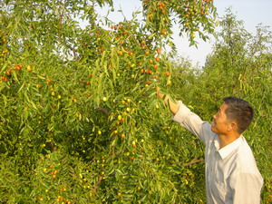 近的来,砀山果园场为适应市场需求,在稳定酥梨生产的同时,积极调整种植结构 ,取得实效。该场退休职工赵庆元同志响应果园场号召,经过六年总结摸索,终于使从河北、山东等地引进了沾化冬枣、金丝小枣、大王枣等优良品种定植在黄河故道的泡沙地上,引进的近千棵枣树果实累累,结构调整终见成效。为了与广大枣农联系、相互交流管理经验,他在互联网上开设“野猫”网页,推广自己的产品和管理技术。 |