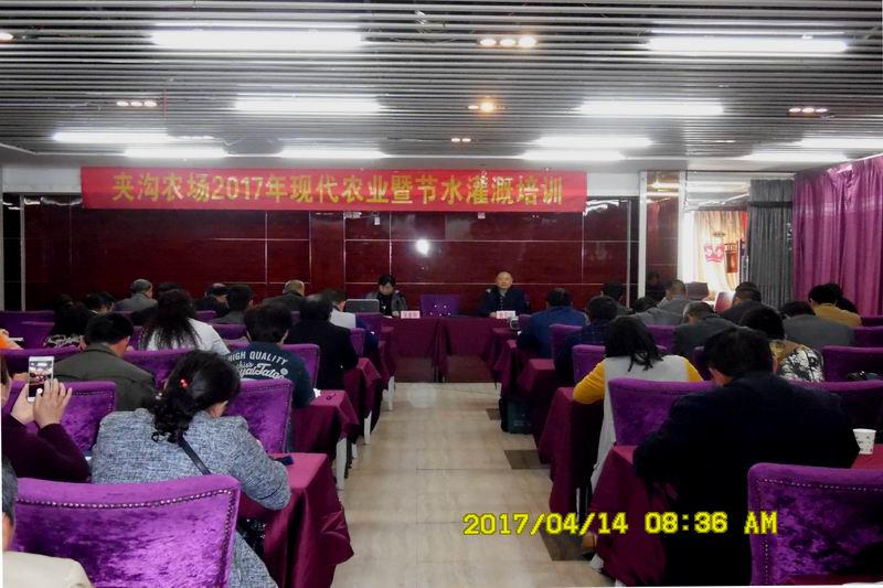 4月14-15日,夹沟农场举办现代农业暨节水灌溉培训班,贯彻落实国家农发项目高标准农田建设要求,助力提升全场现代农业发展能力和水平。培训由总农艺师黄爱国主持,全场相关部门单位负责人、种植大户共60多人参训。