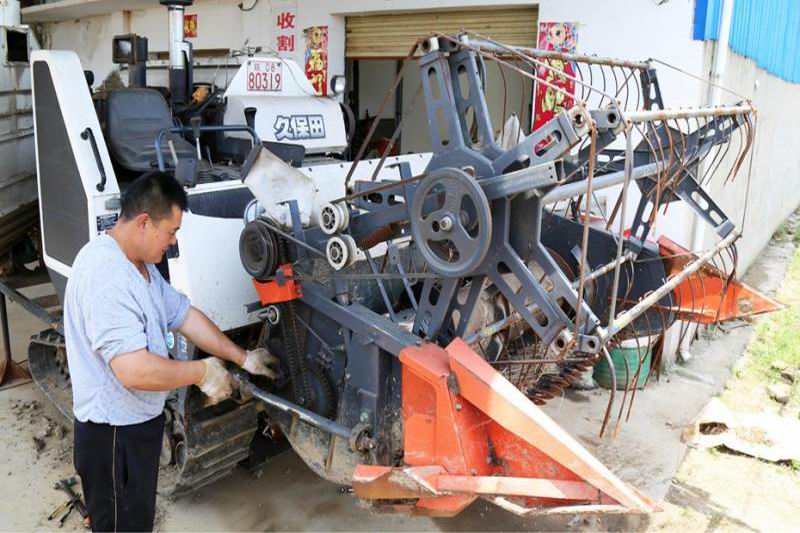 周支援是位农机修理师。他在家门口开了一间机修铺,随着午收临近,他的生意越来越忙。他告诉笔者,从4月中旬开始,来检修机械的人越来越多,有时一天要检修3、4台,大家为的是午收时省心、省时、省力。