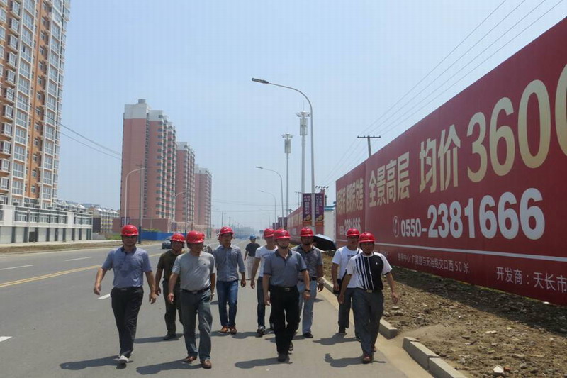 上午10时许,朱正学、徐世园一行一下车,就冒着酷暑赶往垦建公司承建的“通和·易居天韵”楼盘工地,一一检查了一标段正在外装饰的10多幢楼体、已安装的门窗和外立面外涂情况,二标段文明安全施工、设备安装、省级标准化工地创建情况,三标段二号地库封顶施工情况;现场听取天长项目部汇报了上半年楼盘销售、预期偏差、银行按揭、团购预购、施工管理、供电招标、市政道路代建等进展情况和下半年工作计划。 朱正学代表通和班子对天长项目建设运营提出了四点要求:一要把握好项目开发建设时序与销售的关系,把控好建设、销售的资金使用匹配,提前防范各类风险。二要稳定营销团队,增强实战能力,提出体现新思维、新策划、新合作的营销方案并付诸实施,同时要搞好与通和地产营销部的工作衔接,发挥出集体智慧和力量,打好销售攻坚仗。三要通过相关银行“房易安”的合作,想方设法地加快回笼资金。四要强化预算、计划、工程质量、文明施工等管理,保持住较强的凝聚力、执行力和战斗力。