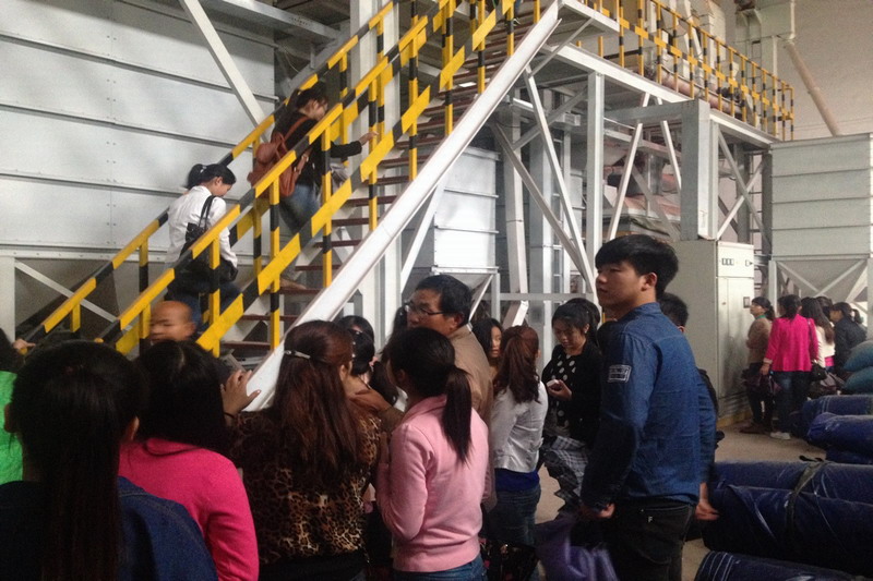 皖垦种业凤阳分公司现已建成安徽科技学院教学科研和学生实习基地。5月10日,该公司迎来了即将毕业的科技学院种子工程、农艺、农学3个专业的实习生。图为种业公司负责人为同学们讲解种子生产流程和全自动玉米加工线原理。(胡业奎)
