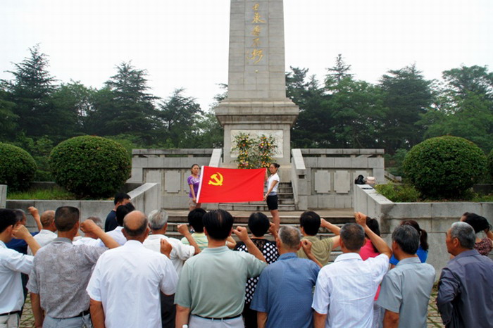 在蚌埠革命烈士陵园,党员们面向鲜艳的党旗庄严地举起右拳,再次从心底发出铮铮誓言:我志愿加入中国共产党,拥护党的纲领,遵守党的章程,履行党员义务……”重温誓词后,大家又参观了蚌埠市历史陈列馆,重温了革命战士浴血奋战的光辉历史,瞻仰了革命烈士的丰功伟绩。