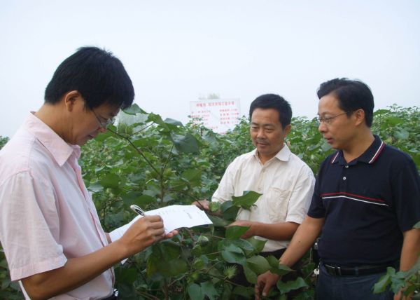 9月16日上午,省农垦皖河农场三益回民分场棉农斯中军的棉田里人头攒动,煞是热闹,原来这里正在举行棉花良种补贴中标品种现场会,来自省城合肥的省农委领导、省种子管理站负责同志以及安庆、池州等市、县农口单位和江苏供种单位负责人一行50多人参加了田头现场会。