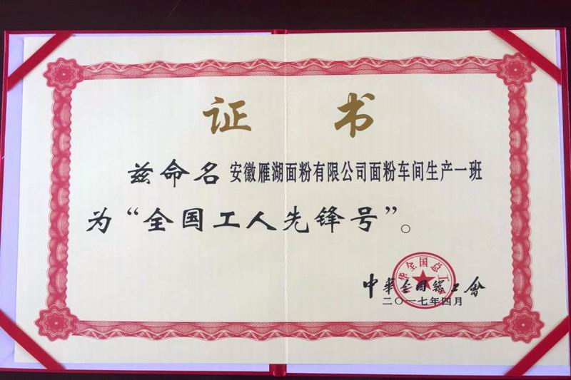 雁湖面粉:勇登“全国工人先锋号”