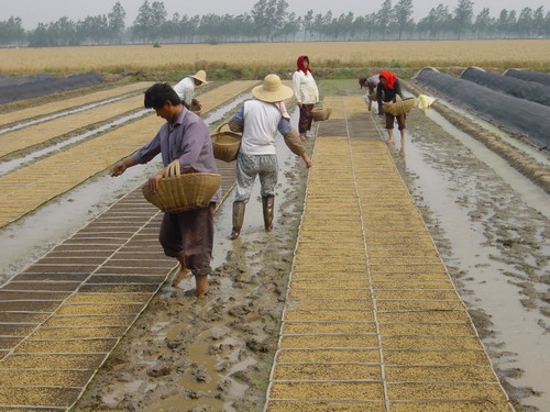 根据今年午收夏种日程表安排,自5月中上旬开始,全场育秧播种工作按计划有序展开。早已做好充分准备的家庭农场职工严格按照场《机插秧水稻生产技术操作规程》要求,在农技人员的指导下,一步一步规范操作,科学加强管理,在分场的田间地头,随处可见家庭农场职工互帮互助忙育秧的劳动场面。目前,全场秧盘播种工作已基本完成,早期播种的小秧已掀网揭膜,呈现一片嫩绿,长势喜人。(夏庆芳)