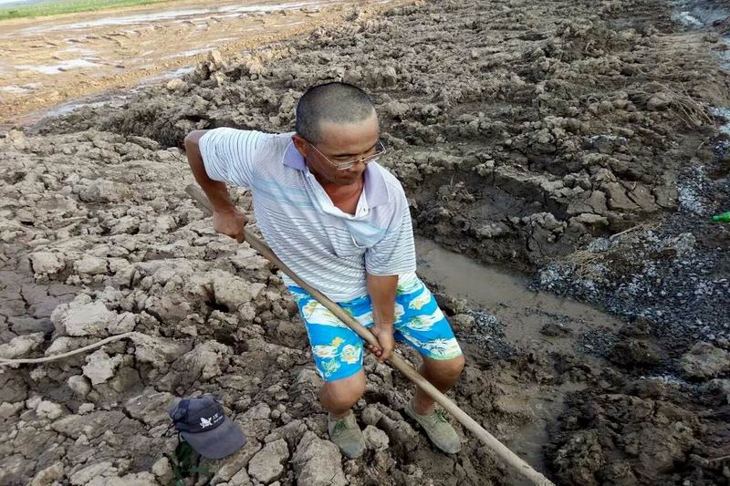 半个小时后,场领导和10多名抢险队员陆续赶到现场。在确认险情处理方案后,大家立即行动起来,装瓜子片、扛石子、打围堰……张长业更是不落人后,百余斤的沙袋扛起就走,草帽碍事就丢在一旁,黄豆大的汗珠顺着脸颊往下流,他全然顾不上停下片刻休息。