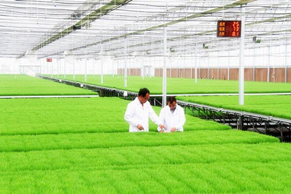 龙亢农场运用农业物联网技术,建成智能温室大棚5000平米,其中移动苗床4500平米,可随时调节光、温、水,专门承担水稻、特种瓜果蔬菜的培苗,每年可完成3100亩水稻秧苗和600万株瓜果蔬菜苗的订单。(李峰)