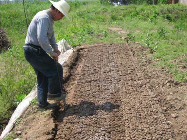 图一为打钵场面  图二为在钵床上播种
