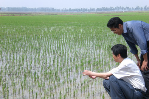 ㈠切实抓好近期水稻田间管理。春争日,夏争时。会议要求目前还没有结束栽秧任务的分场要全力 以赴加快进度,与此同时,各分场要认真按照机插秧操作规程落实好高产栽培措施,把大田水浆管理、肥料运筹、病虫草害防治作为当前田管工作的重点切实抓紧抓好。眼下,一要搞好机插秧大田断垄断行的缺穴补棵工作,大田多余的秧把要清理干净;二要因地制宜,科学合理搞好肥水运筹,提高秧苗移栽后的成活率;三要高度重视化学除草和水稻条纹叶枯病防治工作 ,要深入田间调查,做好草情虫情预测预报,及时对症下药,力求防治效果。各分场田间用药要统一管理,严禁在市场上自私买药使用,以确保绿色食品在大田的生产质量。