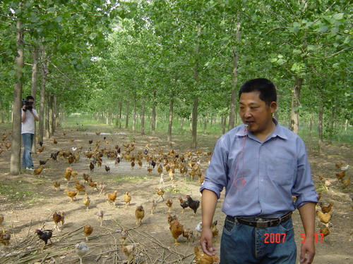 日前,随着天长市电视台一条专题采访新闻——“吴延正和他的‘生态养鸡场’”滚动播出,大圹圩农场草鸡养殖户吴延正和他的林地养鸡场一夜之间出了名。电视新闻镜头捕捉到这样一幅生动的画面:在绿树成荫、风景秀丽的树林养殖场,鸡主人一声响亮的长哨,成百上千只小鸡从四面八方争先恐后蜂拥过来,欢蹦乱跳尾随着主人讨食吃,十分有趣。