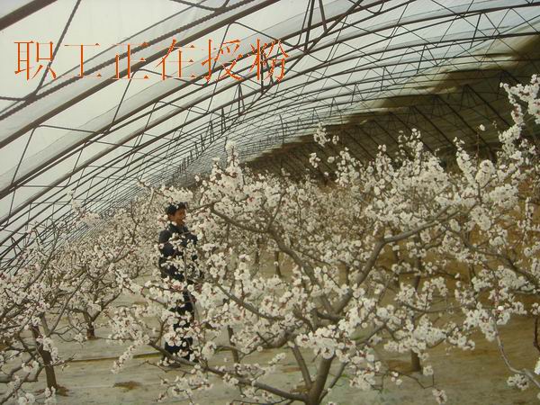 砀山果园场大棚杏花开,职工授粉忙