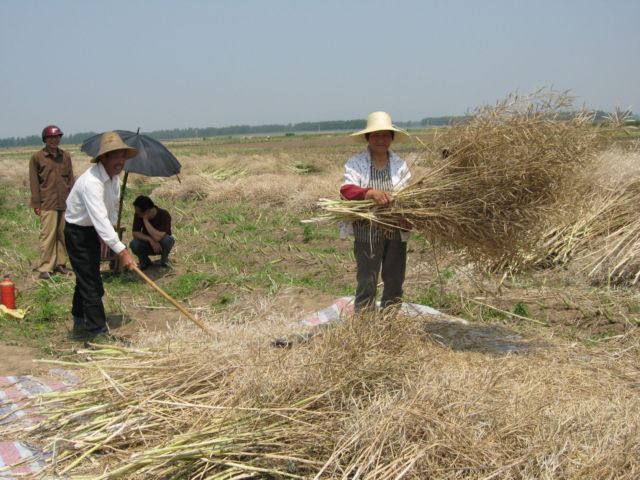 图一为油菜收割后脱粒场景;