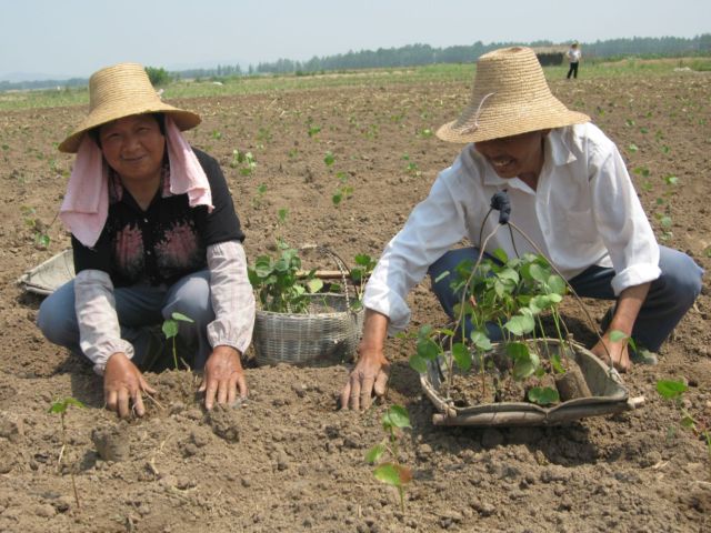 图二为棉花营养钵移栽场面;