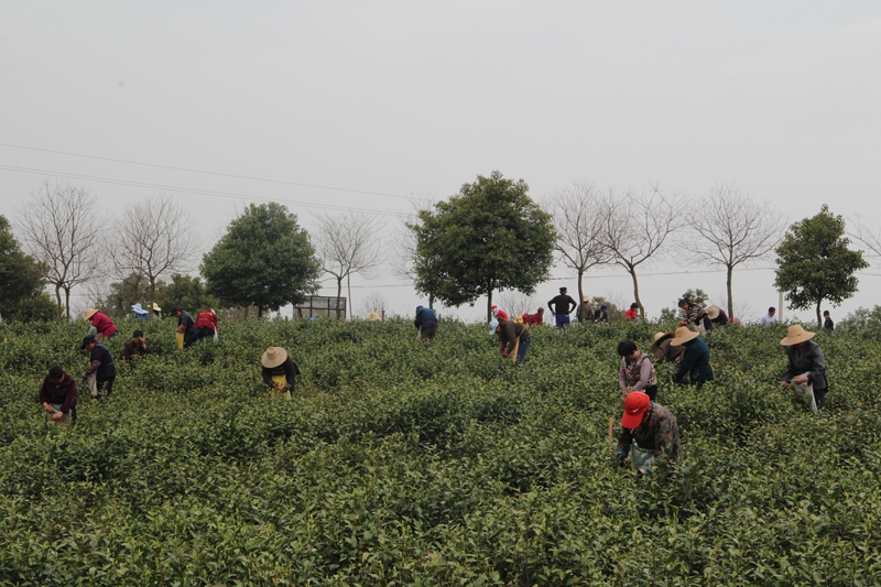 阳春三月,桃花正红。3月30日,十字铺茶场200亩白茶全面开园。只见茶园人头攒动,茶工采茶正忙,双手在茶树中翻舞不停,将一片片嫩芽揽入腰间。该场多措并举抓好今年名优茶采摘,去冬以来多渠道落实了采茶工,确保春茶生产增产增效。